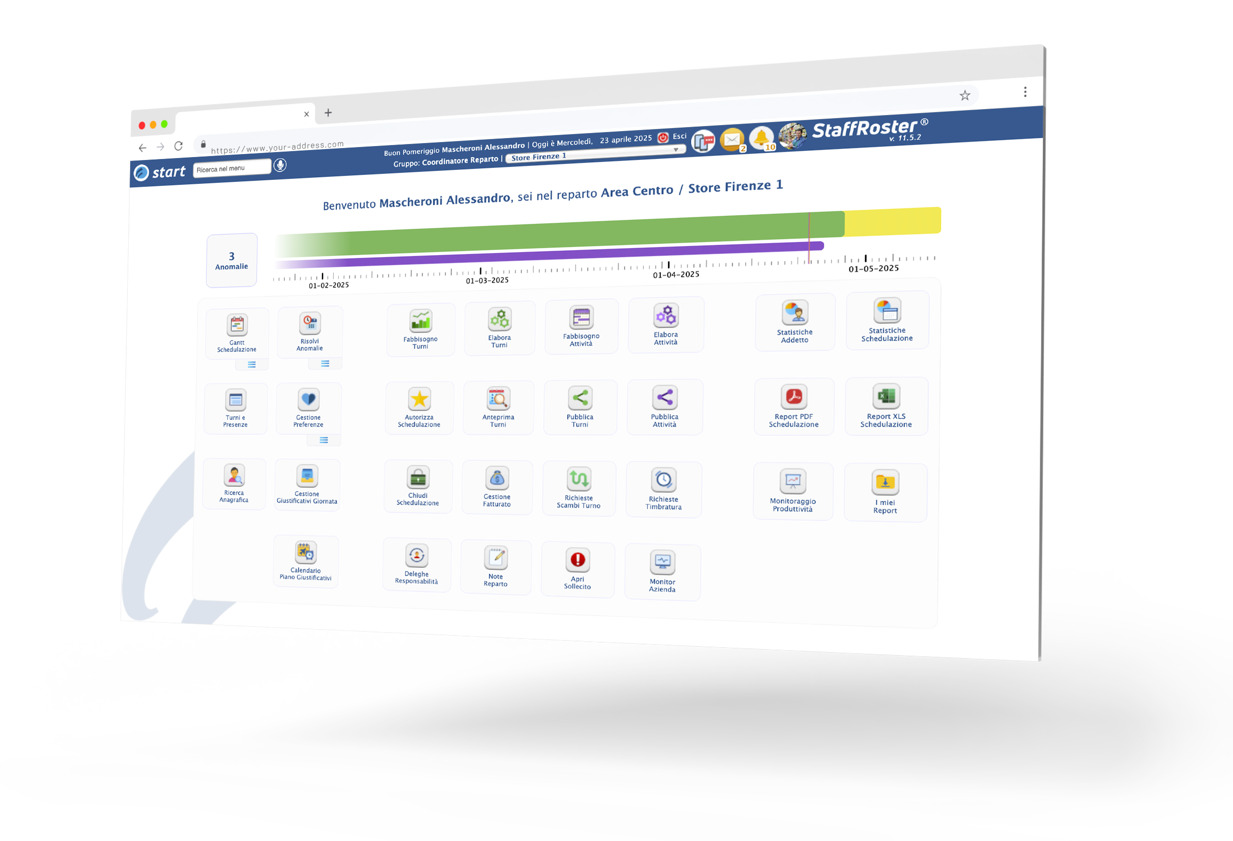 StaffRoster è il software avanzato per la pianificazione turni. Flessibile e potente, StaffRoster si adatta a ogni settore, semplificando la gestione del personale e ottimizzando l’organizzazione del lavoro.