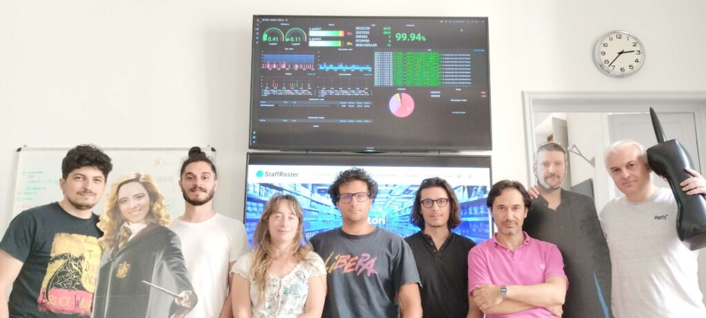 Team di informatici esperti di architetture di sistema impegnati a garantire la Business Continuity della piattaforma SaaS di erogazione del servizio