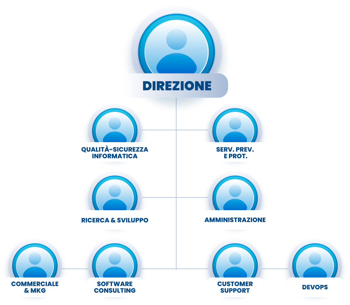 Team di ingegneri dedicato all’evoluzione del software monitorando il contesto tecnologico di reiferimento e le nuove esigenze delle aziende